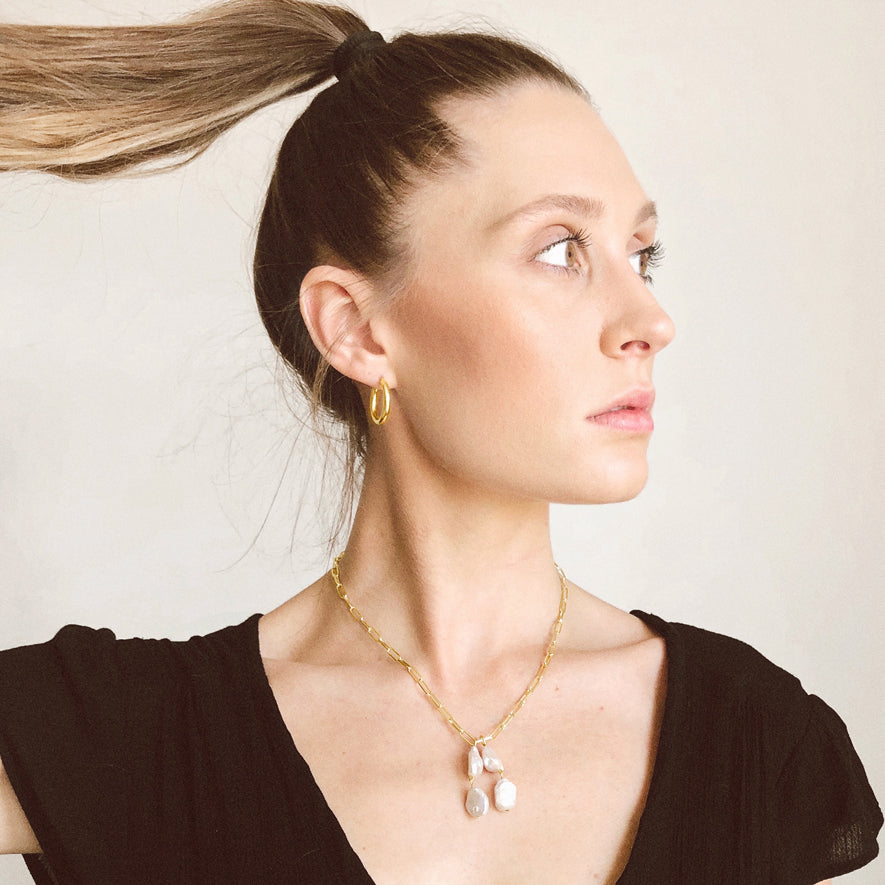 Double Wonky Pearl Hoop Charm