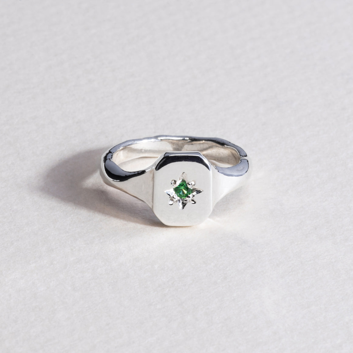You definitely can! Reach out to our custom design team with which birthstone you'd want on a signet and we'll chat through all the options with you.