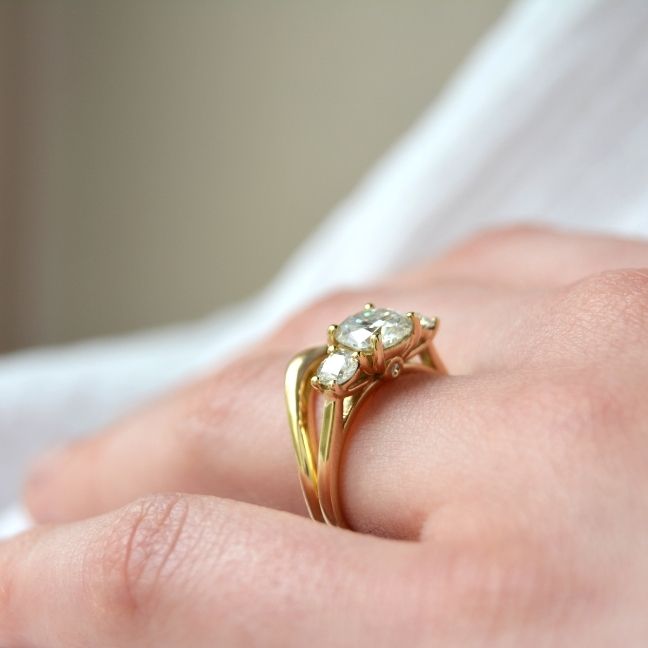 The Trilogy Ring is truly a classic for a reason. Beautifully balanced, elegantly simple, and endlessly gorgeous. We love customisation more than anything, so bring us your ideas. We’re thinking a subtle couple’s birthstone moment as the stone underneath the setting…