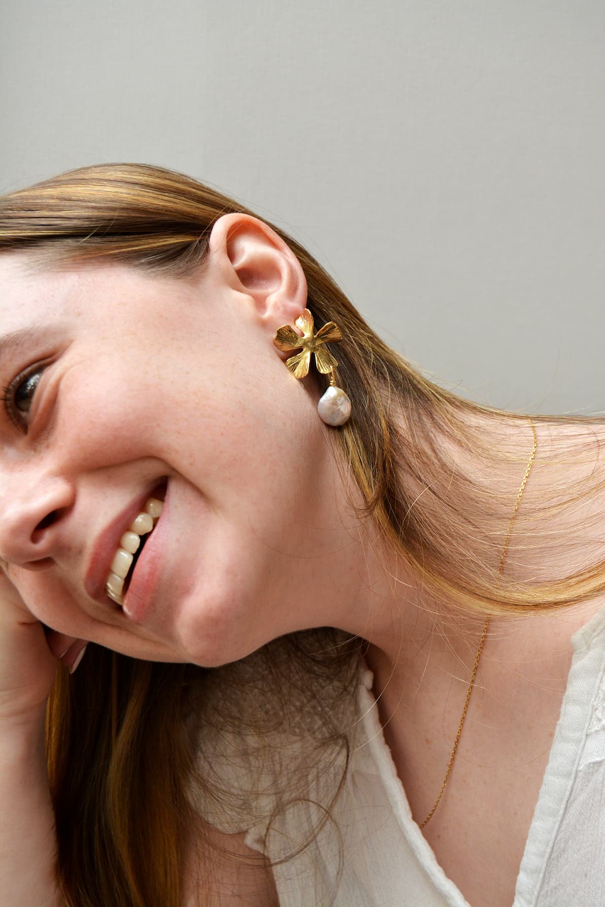 Organic freshwater pearl meets a flower that dances in the light. The wedding might be about the couple, but the friendships that get the bride down the aisle are worth honouring too.